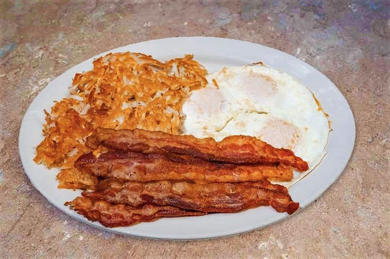 Served with hash browns, English muffin, raisin toast, buttermilk biscuit or buttered toast & jelly.